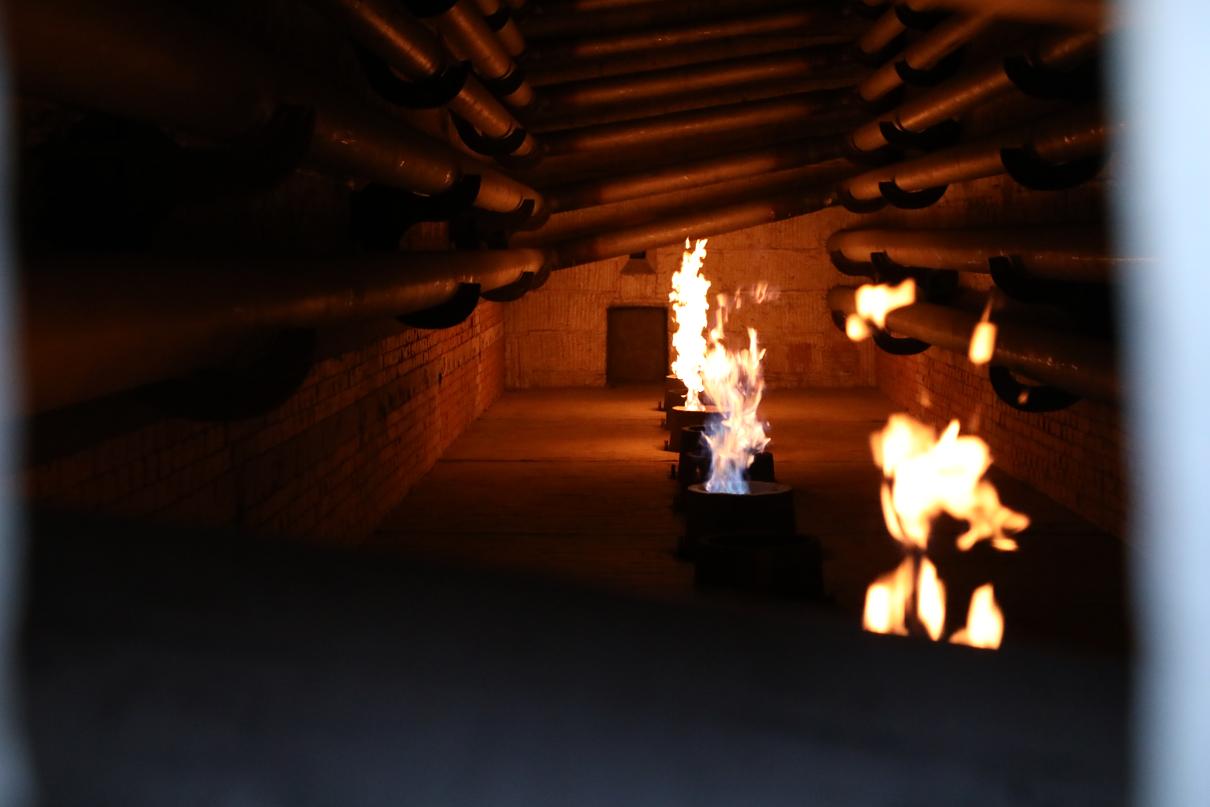 开阀人员缓慢开阀并调整阀门开度,点火人员用点火器点燃长明灯,放入炉膛,点燃两台加热炉,点火一次成功。李秀辉要求预处理车间要加强监测,确保烘炉顺利进行。