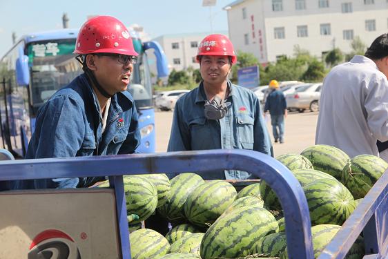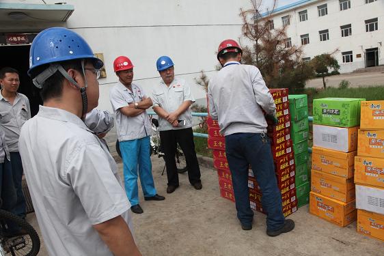 7月22日,公司党委副书记、工会主席霍绍发,工会副主席周海辉一行,为检修一线的职工送去西瓜、绿茶等防暑降温慰问品。